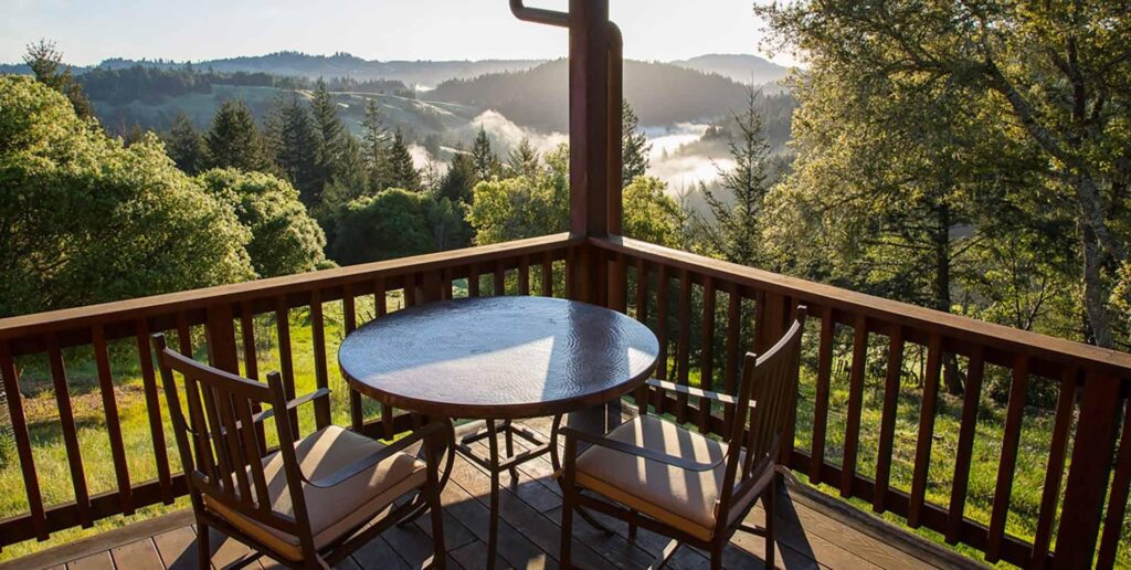 Relax in the mountains of the Sonoma Coast in Cazadero (pop. 354), an old logging area that’s now as famous for muffins and wood-fired pizzas as for its old-growth redwoods that crowd the road.