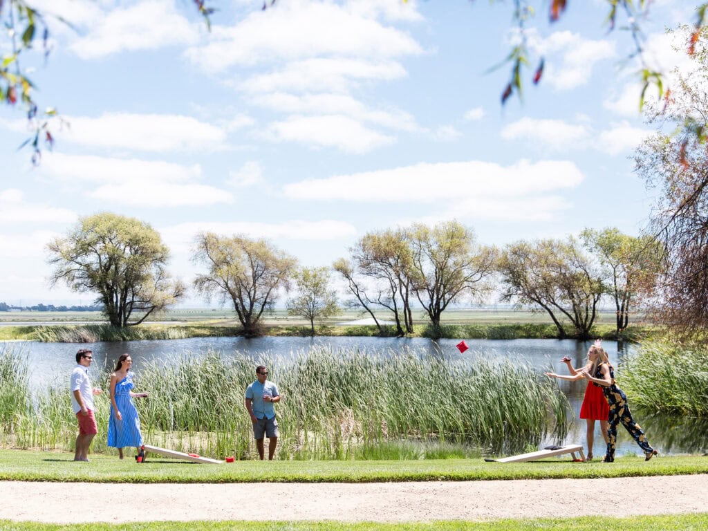 The gorgeous hilltop winery offers some of the best views in the famous wine-growing region of Carneros. Here in the charming town of Sonoma, Ram’s Gate boasts a garden that produces a mini farmers’ market at the winery entrance, a dining area with a community table for by-appointment chef’s tastings, and plenty of patio tables overlooking the vineyards. To truly immerse in the picturesque setting, a wine-inspired epicurean picnic by the pond awaits. The chef crafts an assortment of mouthwatering delicacies to pair with your chosen wine, tucked into a real wicker basket packed with a blanket. Guests stroll through the vineyards to secluded spots between the vines and a serene pond, spread out their blankets, and relax.