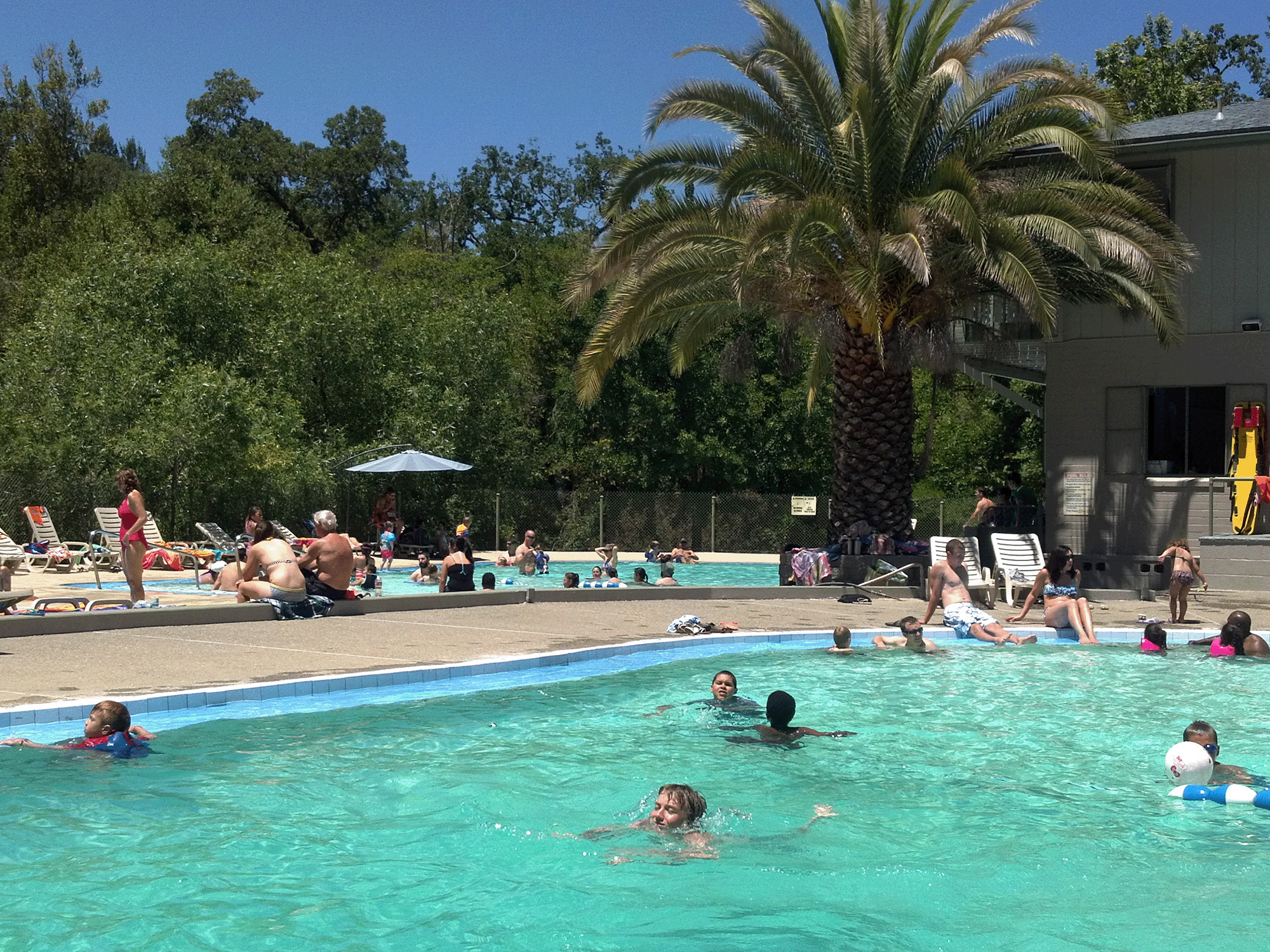 Nestled between forested hills and a lively creek, this 22-acre property includes geo-thermal mineral springs, once sacred to the local Wappo Indians. Today, you can access the spring waters in three mineral pools. The water temperature averages about 82 to 84 degrees Fahrenheit, and the pools vary from 4.5 to 9 feet deep, with lifeguards on duty. Typically open each year from May to September, the resort also includes hiking and biking trails, basketball and volleyball courts, a baseball field, croquet, ping-pong, horseshoe pits, a kids’ playground, and plenty of picnic and barbecue sites.